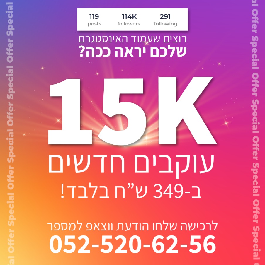 10 אלף עוקבים + 120 לייקים ל30 פוסטים עתידיים